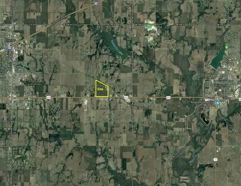 179.8 acres located just 3.5 miles east of Andover Road between Augusta and Andover. Just 1/4 mile from Augusta Airport. This property can be purchased whole or as one or two 35+/- acre commercial sites with US Hwy frontage, or as a 110 acre residential development or homesite. Many potential uses, commercially and residentially. High visibility and traffic along Hwy 54/Kellogg for many potential commercial uses and privacy behind for a residential estate or development. Priced to sell as 180 acres at $7,000/acre; 110 acres at $5,000/acre, or 35 acres at $12,500/acre.