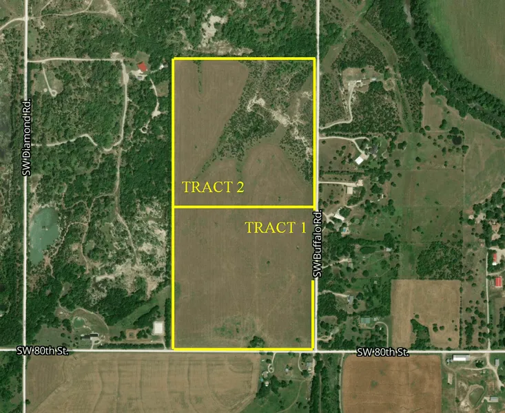 LAND LOCATION FROM AUGUSTA: From Ohio St Rd, 2 1/2 miles west on SW 70th to Buffalo Rd., south 1/2 mile.