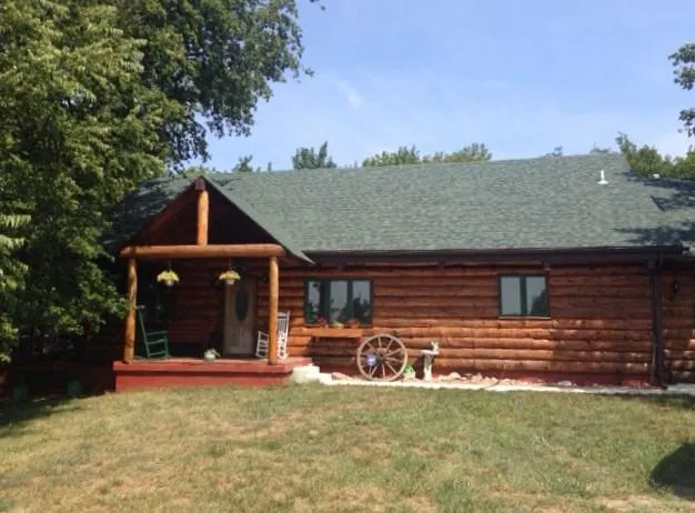 One of a kind log home. You must see to appreciate design and beauty of the wood. All rooms seem to be oversized including the garage. A metal 30x60 extra building for shop or ag equipment. A variety of wild life are visible from this wonderful setting. Many deer travel through this area.