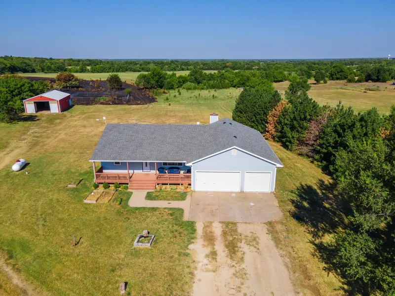 8.9 ACRES, 4 CAR ATTACHED GARAGE, 50X30 SHOP, 4 BEDS IN A SPLIT PLAN, WALK OUT BASEMENT, CIRCLE SCHOOLS, & JUST EAST OF TOWANDA & NORTH OF AUGUSTA! THIS IS A RARE CHANCE TO HAVE A HOME ON SOME LAND WITH A SHOP AND STILL CLOSE ENOUGH TO THE CITY! WALK INTO A LARGE LIVING ROOM WITH TINTED VINYL WINDOWS. THE KITCHEN/DINING AREA IS HUGE WITH TONS OF GRANITE PREP SPACE, A WALK IN PANTRY, STAINLESS APPLIANCES, A GAS RANGE, EATING BAR, & MORE! THERE ARE 3 BEDS ON THE MAIN LEVEL IN A SPLIT PLAN INCLUDING A MASTER WITH A PRIAVET BATH, WALK IN CLOSET, & JETTED TUB! THE XL WALK OUT BASEMENT FEATURES A THEATRE AREA, A FAMILY ROOM WITH A WOODBURNING STOVE, REC SPACE, & 4TH BEDROOM! HOME SHOWCASES A 4 CAR ATTACHED TANDEM GARAGE AND A 50X30 SHOP WITH A LOFT AREA, 220 ELECTRIC, CONCRETE FLOORS, & A IS PLUMBED FOR A BATH! RELAX ON THE COMPOSIT DECK OVERLOOKING YOUR COUNTRY OASIS JUST OUTSIDE THE CITY! Roof is 2015, tankless water heater, 1 yr Trane HVAC system, tinted vinyl windows, 2x6 exterior walls, & More! THIS IS A GREAT FIND, CALL TODAY FOR A TOUR! Post office says Eldorado but its closer to Towanda & just N of Augusta