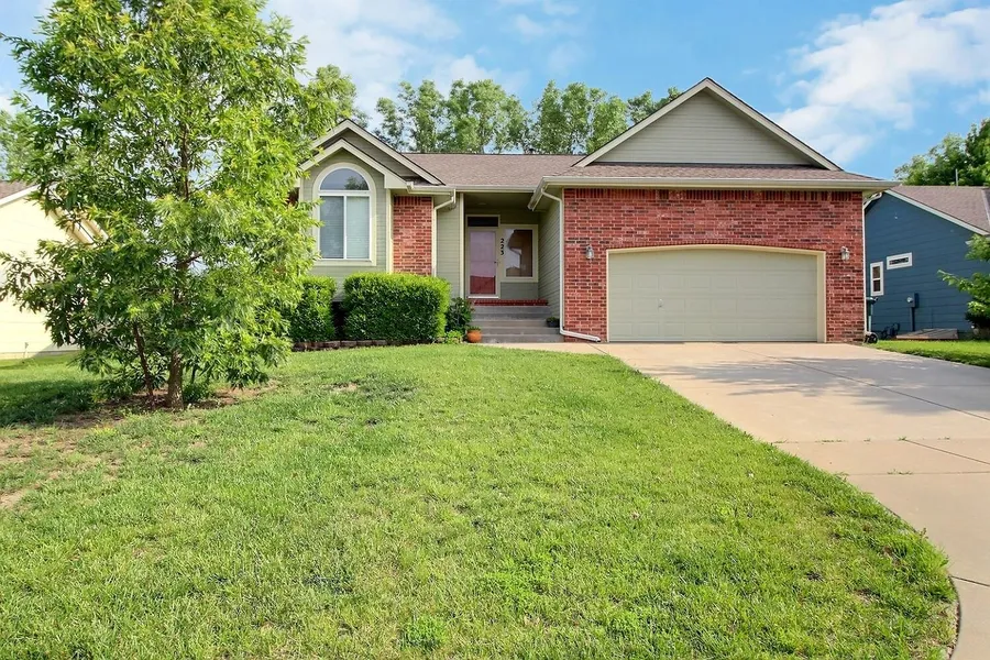 Welcome to 223 W Waterford Ct, a delightful home located in the serene Tuscany neighborhood in Andover, KS. Nestled in a quiet cul-de-sac, this home offers an ideal blend of comfort, space, and convenience for everyday living. As you enter, you're greeted by a spacious living room with vaulted ceilings, beautiful wood floors, and an attractive gas fireplace. The spacious kitchen is equipped with an island that's ideal for food prep and entertaining. The abundance of cabinets combined with the pantry ensures you have plenty of space for all your kitchen essentials. The large primary bedroom is a highlight, boasting vaulted ceilings and its own private bathroom. This bathroom includes double sinks, a soaking tub, a shower, and a walk-in closet, offering both privacy and convenience. Descending to the basement, you'll find a generously sized family room filled with natural light from view-out windows and perfect for gatherings or movie nights. The basement includes an additional bedroom and bathroom, making it perfect for guests. There's also a large storage area for keeping your belongings and seasonal decorations neatly organized. Outdoor enthusiasts will appreciate the private backyard, with no neighboring houses directly behind. It's a quiet and peaceful space where you can enjoy nature and unwind after a long day. The neighborhood pool and playground further enhance the appeal of this property and provides endless opportunities for summer fun! The nearly new furnace and air conditioning system promise a comfortable indoor climate year-round and no special taxes adds to the financial attractiveness of the property. You will want to make this wonderful house your new home with this friendly community, good schools, and convenient access to local amenities.