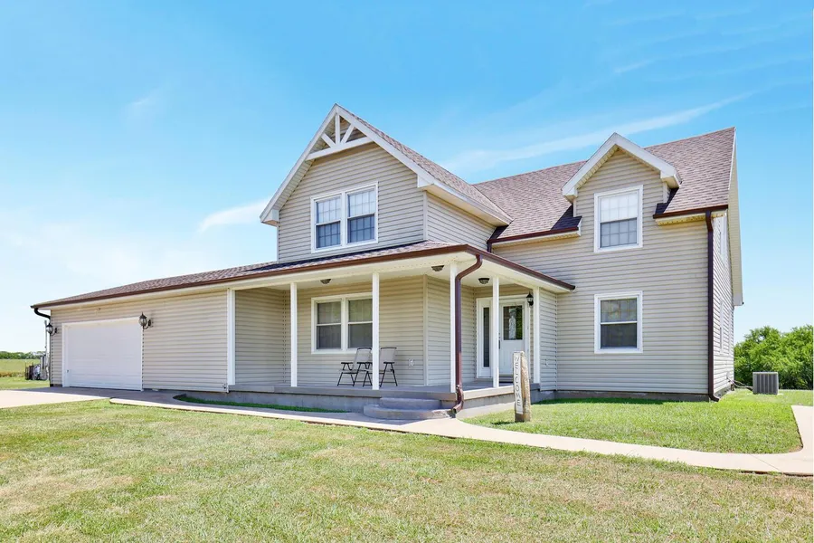 Country Life at its best and only 20 minutes from Wichita! This adorable farm house has 4 bedrooms, 3.5 bathrooms, oversized 2 car garage, and sits on almost 10 acres! The main floor features a large living room, formal dining room, bedroom, bathroom, kitchen with eating space, as well as breeze way with laundry room and 1/2 bath! The kitchen cabinets are Amish custom built and all kitchen appliances remain! The upstairs you will find 2 large bedrooms with hall bathroom as well as a large master with double closets and master bathroom. ADD INSTANT EQUITY WHEN FINISHING THE BASEMENT! The home has an adorable front porch, long treed drive way, a pond, and RV hookups! Call for a showing today before it's to late!