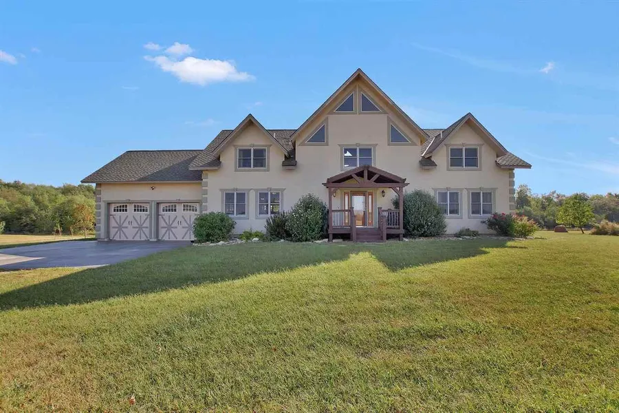 COLORADO INSPIRED TIMBERFRAME LODGE HOME! All of this is only 1 mile off blacktop, 12 minutes from Andover & 15 minutes from NE Wichita! You'll enjoy all 39.7 acres that includes a stocked 2 acre pond, basketball court, deer stand, & wildlife galore! Not only is part of the property fenced for horses, which includes a 12x20 horse shelter, but this property also has a 40x60 shop with concrete floors, electricity, & plumbing! Enjoy evenings watching wildlife & overlooking the pond in the distance on your massive east facing back deck with hot tub! Maintenance-free cement stucco exterior on this energy efficient home with concrete block forms and blown-in foam insulation w/oversized 2-car attached garage. The living room of this home is breath taking to say the least with 26' beamed ceilings, fireplace, & beautiful double hung windows overlooking the deck & pond in the distance. Magnificent kitchen with black granite counter tops, hickory cabinets, & a 7' island with a stainless steal counter that matches all stainless steal appliances. Kitchen opens up to the massive fabulous beamed dinning room perfect for family gatherings! Not only does the main floor include the kitchen, living room, dinning room, separate laundry room, but also a wonderful master bedroom suite! Master bedroom has a beamed ceilings, walk in closet, private master bathroom! Upstairs loft has a sitting room, & two MASSIVE loft bedrooms BOTH with private bathrooms! View-out basement has a family room, rec room, 1 bed, 1 bath, large storage room & concrete storm shelter!