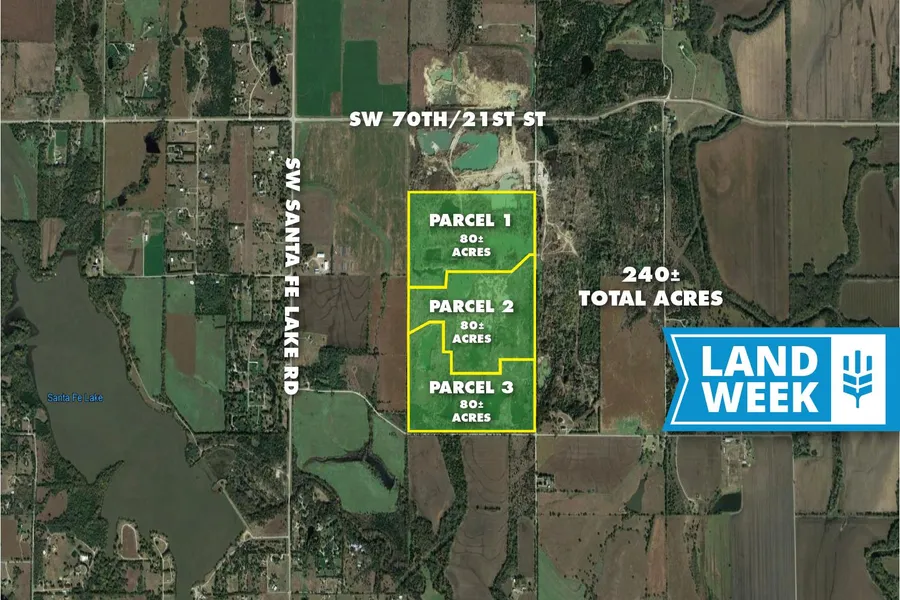 LIVE STREAM AUCTION EVENT - OFFERED HIGH BIDDER'S CHOICE!!! (3) 80 +/- Acre Parcels in Augusta, Kansas. This is a unique opportunity to own a former rock quarry near Santa Fe Lake. Located close to the blacktop at 21st / 70th and SW Santa Fe Lake Rd, this property offers ease of access to I-35, U.S. Highway 400, Andover, and Augusta.