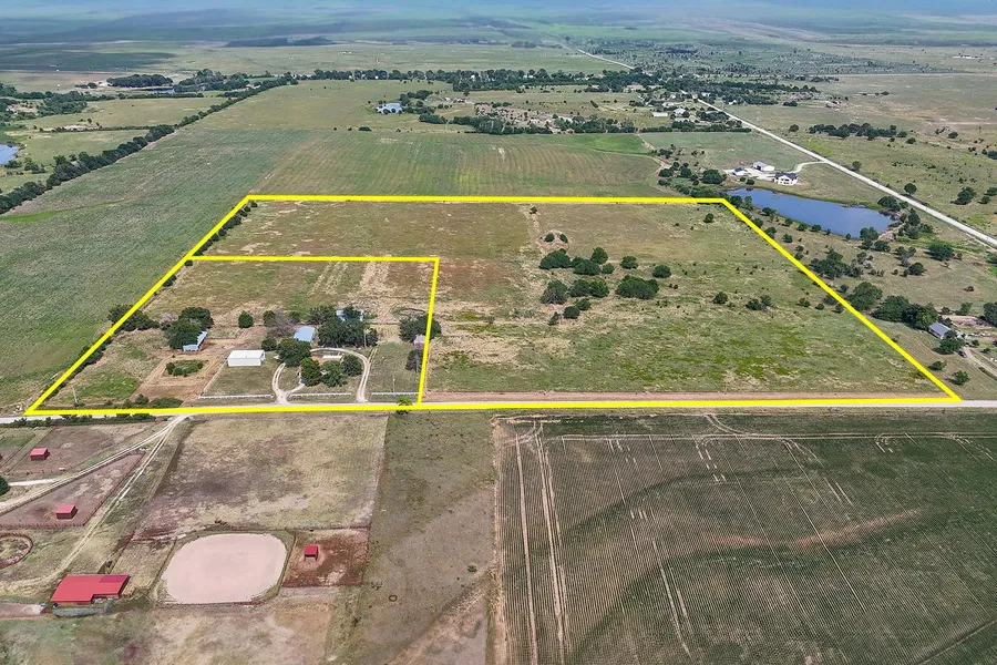 ONLINE ONLY!!! Discover country living near El Dorado with this 40-acre property split into two parcels. Parcel 1 includes an existing home on 10 acres features a spacious interior with a stone fireplace, open-concept kitchen, and sunroom. Multiple outbuildings including a garage/shop, loafing shed, and storage. Parcel 2 includes 30 acres that offer potential for expansion, pasture, or investment. Enjoy mature trees, proximity to highways, and easy access to El Dorado and its lake. This property blends rural charm with modern comfort, just minutes from city amenities.