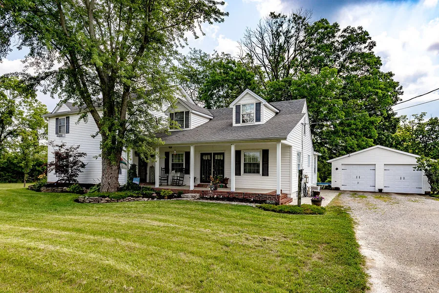 Beautifully renovated farmhouse on situated on 4.9 acres(partially wooded). Features 4 bedrooms and a study, 4 full bathrooms. Beautiful floor to ceiling brick fireplace in living room with large open loft area. Also has a large formal dining room and newly remodeled kitchen with breakfast nook. The lower level boasts a 2nd fireplace w/large family room & full bath. Hardwood floors throughout. New above ground pool with sunning patio. Large 45'x60' barn w/concrete, electric, & water.2 staircases. Entire lot is fenced and has a gate at the front of driveway. Original farmhouse built in 1949, addition in 2004. 2 HVAC including wood add-on, 2 H2O heaters