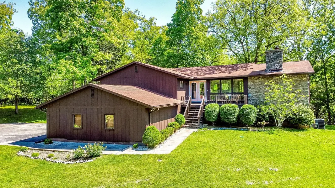 Gorgeous ranch home with walkout lower level is tucked away on private drive, over 1-acre wooded lot! Both levels allow a ton of natural light and views of the beautiful scenery with plenty of windows and 2 decks that overlook the property. Main level features large kitchen w/ newer appliances and corian countertop. Master Suite, Living Rm, Dining Rm, Laundry Rm on main level. Lower level has 3 bedrooms, family room and great room. Great home for entertaining or enjoying the peacefulness!