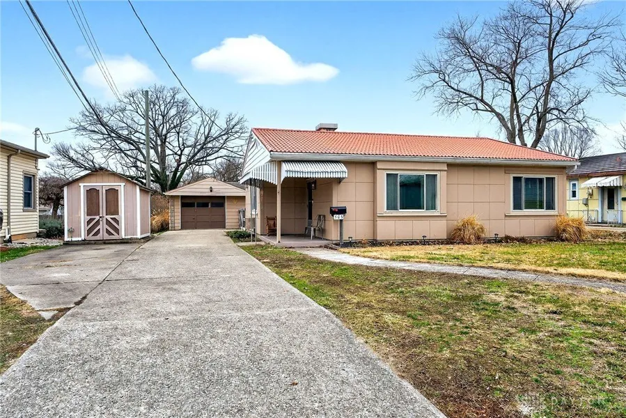 Come own a piece of history with this charming post-WWII Lustron home! This unique steel-frame residence with iconic enamel panels offers convenient one-floor living with no steps. Inside you'll find 2 bedrooms, 1 bath with a new insert surround, and a comfortable layout featuring a living room, dining room, kitchen, and laundry room. Updates include LVP flooring, a hot water heater and furnace (2021), a mini-split for cooling (2025), and a replaced roof (not original). Outside, enjoy a 1.5-car detached garage with ample storage or workspace, an additional parking pad, covered patios on the side and back, and a manageable backyard perfect for easy maintenance.