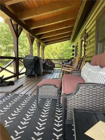 Nestled on 1.33 fenced acres in the sought after Green Acres neighborhood, this stunning 3 bedroom log home in Saxonburg Borough offers the perfect blend of rustic charm and modern convenience. The heart of the home is the spacious kitchen, featuring stainless steel appliances, an island and ample storage. An impressive stone fireplace is the centerpiece of the open floor plan, complete with cathedral ceilings that enhance the airy and inviting atmosphere. This home boasts a beautifully finished lower level, idea for entertaining. Outside, a sprawling covered porch spans the entire length of of the home, providing a serene spot to relax and take in the natural beauty and visiting wildlife. Additional highlights include a large detached 2 car garage and the peace of mind of a Duramax generator, ensuring uninterrupted comfort during any power outages.