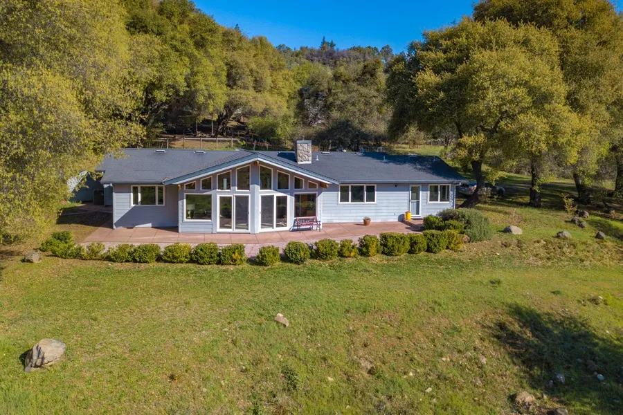 TWO HOMES'' in Butte Creek Canyon on 5.1 +/- acres. One 2108 sq/ft built in 2007 features a gated entry, 3 spacious bedrooms, master with large walk-in closet, 2 baths with granite countertops, Slate and tile floors, a large living room with panoramic views of the bluffs towering over scenic Butte Creek, & adjacent vineyard. Inviting formal dining room with H/W flr and a beaut kit with tile floors, granite countertops lrg walk in pantry S/S appliances, att, 2 car gar with addl storage. The 2nd home is a remodeled 2/2 approx 1485 s/f with an att 2 car garage, spacious lv rm, kit with eating area, a charming covered front porch & a Large screened porch. An old, historic stage stop is adj to the 2nd home. Additional 28x40 shop/garage with elect,plumb & half bath, perfect for a car buff looking for more space. Included within this building is a remodeled 1 bed ADU/Guest house perfect for your extended family visitors or as a VRBO unit.There is also a 12x16 Yoga studio/man cave/she shed.