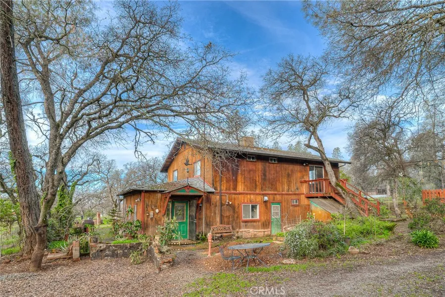Nestled in the foothills of Oroville, this stunning and unique property is located at the end of the road! Enjoy tranquil privacy in the old growth oak trees, whispering tree tops and the offerings of nature with the large pond and surrounding water sheds. This property encourages nature to be free while enjoying the convenience of being just 10 minutes from town and a short distant access to the highway, giving you easy commute to surrounding larger communities! Nearly 2600 square feet of open floor plan, this two-story custom home was built with pride of ownership! Enjoyed by one owner, this property was built to entertain! You enter from the choice of two main entrances with pathways of laid brick to give it stunning grandeur of an estate. Inside, you will find large hallways and staircase, giving you plenty of open room for décor and benches. Downstairs you have a large living room to view the pond and natural surroundings with a gas fireplace and natural stone hearth for warming the soul! Open to a large dining room with full dry bar setup for entertainment. Downstairs you have a large bedroom, second bedroom/office, laundry room, full bath and kitchen, Upstairs you have a stunning primary suite or can be used as a separate studio, with outside access and apartment style kitchen. Two additional nice-sized bedrooms make this the perfect home for large family style units! The land is all stunning, plenty of room for a shop, livestock and usable flat/rolling terrain. Seller installed a new Septic System, and we have full well report on file! Call your Realtor today for a private showing. Agent notes county records show 3 bedrooms. Buyer advised to investigate all aspects of the property. Data was collected from public records.