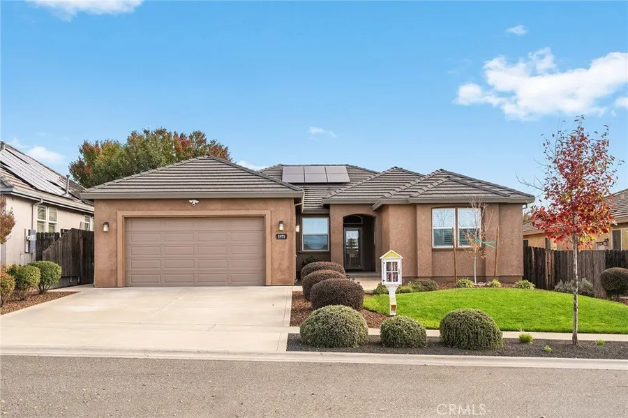 Beautifully updated 4 bedroom, 3 bathroom 2,341 SF home with owned solar and modern kitchen. The stylish interior features high ceilings creating an open, airy feel. All 4 bedrooms are spacious and have full sized closets. The Primary suite is situated in the back corner of the home providing privacy and includes a massive dual sink vanity and oversized walk in closet. Recessed lighting and luxury vinyl plank flooring in common areas. Full sized indoor laundry room with sink and extra cabinetry. The 44 panel, 10.73 kW owned solar system includes 2 battery back up units. The tastefully landscaped back yard is equipped with a Jacuzzi and Covana Oasis electronic cover which lifts with a push of a button, has sun shades and colorful lights! If you enjoy a home gym, the two car garage is the perfect spot because there is a mini split air conditioner/heater already installed. The tile roof is built to last on this 2016 built home. Near Meriam Park and shopping. Get anywhere in town quickly with close access to Bruce Rd, Skyway Hwy 32 and Hwy 99.