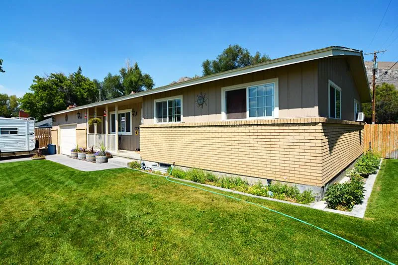 Beautiful 2268, 3 bed 2.5 bath home in Arco, Idaho. This property is very private despite being located on the hill. The lawn is large and immaculate and is irrigated via underground sprinkler system. The home has a new roof and brand new windows. New sliding glass door leads to the comfortable exterior deck. The kitchen has knotty alder cabinets. The basement has a family room, and the adjacent man cave has pergo type flooring, knotty pine ceiling, and a free-standing wood stove. Metal storage shed is included. Garage is 28x28, two-car insulated, with an 8x16 door and 11 foot ceilings. Property extends across street to add .4 acres of parking and storage.