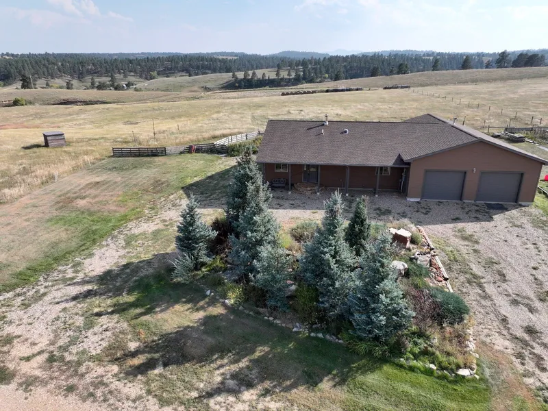 Pure country living best describes the Harmon Ranchette. Situated just west of Belle Fourche SD and on the edge of the Black Hills, the views and backyard aesthetics combine beauty, convenience and quiet. Anchored by a custom built 2,442 sq ft 3 bed 2 bath residence situated on 10 acres and comprised of 4 contiguous parcels, the property is complete, versatile and move in ready! Features include, open floor plan, wood and tile flooring, natural stone accents, wood stove and in-floor heat, large master and on-suite, attached oversized garage/barn, raspberry bushes.