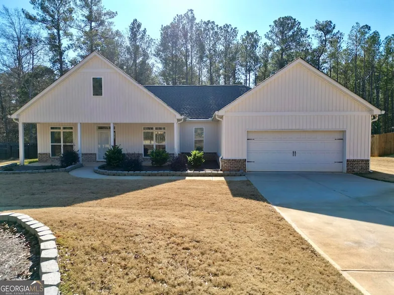Welcome home to this delightful modern craftsman-style ranch home! The split bedroom design offers privacy with a spacious great room featuring a fireplace, perfect for family gatherings. The large kitchen, equipped with granite countertops and a tile backsplash, is ideal for both cooking and entertaining, complemented by a separate dining room. The master bedroom is inviting with its generous closet and convenient access to the attached laundry room. The luxurious master bath, complete with a garden tub and separate shower, adds a touch of elegance. Additionally, the large covered porch and double car garage enhance functionality, while the 1.6 wooded lot with a fenced back yard provides a serene, natural setting. This home is perfect for families or anyone looking for both comfort and style in a convenient location!