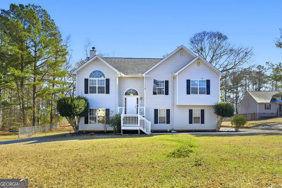 Contemporary Five Bedroom Terrace Level home on an acre+. NO HOA! Bring all the toys and utilize your 40x30 out building with two 10x10 garage doors. Front entry opens to a two story foyer with steps to main living area. Cozy family room features a wood burning fireplace with entry to separate dining room. Kitchen has direct access to large deck overlooking PRIVATE rear yard and greenbelt, no rear neighbors ! Primary suite has walk-in closet, bath with separate tub and shower. Two additional bedrooms and bath complete the upper level. Lower terrace level has complete in-law / teen living area with two bedrooms and full bath. Second laundry room in hallway. Owner had added additional detached metal building within last year. Building is all metal with high ceiling, tons of storage for your boat, ATVs, extra vehicles. Location is convenient to Lake Jackson for boating and fishing. D/T Jackson, McDonough, Covington within short commute. A great value in this price range ! Seller to provide 5000 in close cost with acceptable offer.