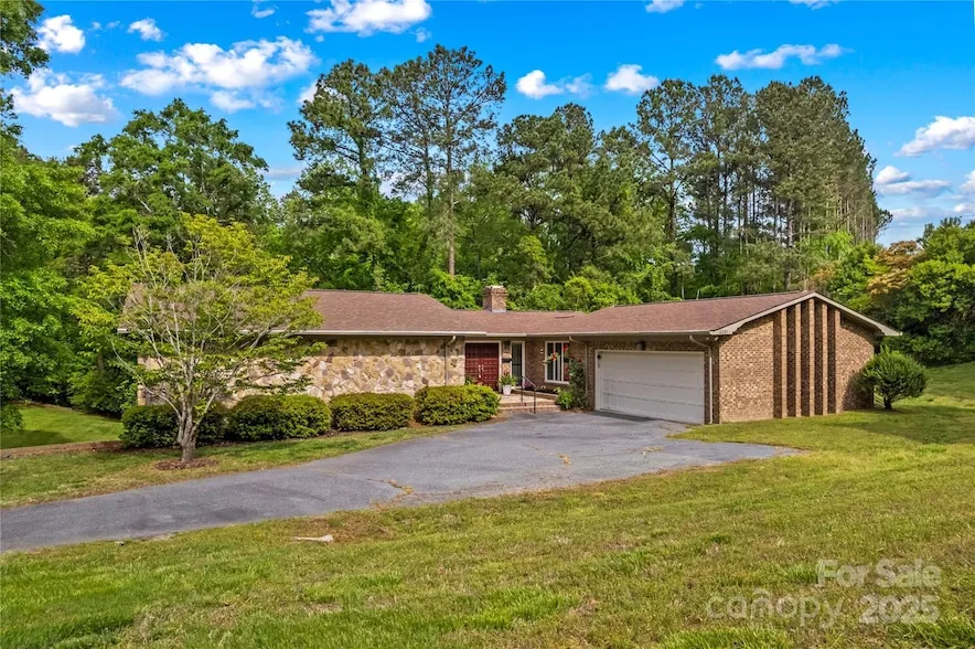 This gorgeous 3 bedroom, 2 bath home sits on a 1.13 acre lot and has a full basement. You will love the wood beam ceilings in the living room, the cozy rock fireplace, and the beautiful flooring throughout. Kitchen has tons of cabinet space, island, and breakfast bar. The separate dining area and spacious living areas are perfect for entertaining guests. Full basement with interior access and garage door has endless possibilities, perfect for all hobbies. Built-in workbenches, tables, and shelves are the perfect space for a workshop. The huge back deck overlooks a tree-lined yard for privacy and a fire pit area. Amazing location that is convenient to shopping, dining, medical centers, and major interstates.