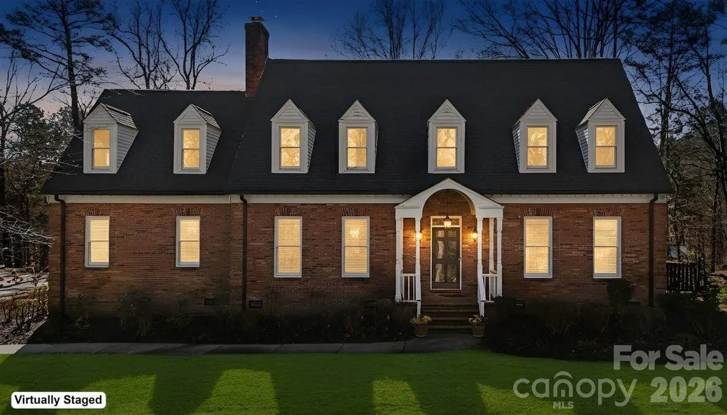 Nestled on nearly three serene, tree-lined acres, this two-story almost all brick home offers an estate-like sense of privacy, exceptional space, and flexible living options. Primary on main with three additional oversized bedrooms, three full baths, and two half baths, there is ample room for everyday comfort and effortless entertaining. The main level features a convenient two-car garage and two primary suites—one on the main floor and another upstairs—perfect for multi-generational living or long-term guests. An updated chef’s kitchen opens to an inviting enclosed sunroom, and rich real hardwood floors run throughout the home for a warm, cohesive feel. Additional highlights include a dedicated media room with theater setup, generous bonus and flex space with a mini kitchen, and a peaceful bi-level deck overlooking the beautiful grounds, ideal for relaxing, dining, or hosting gatherings. Spring will greet its new owners with dahlias, primroses, knockout roses, rose trees, daffodils and hostas.