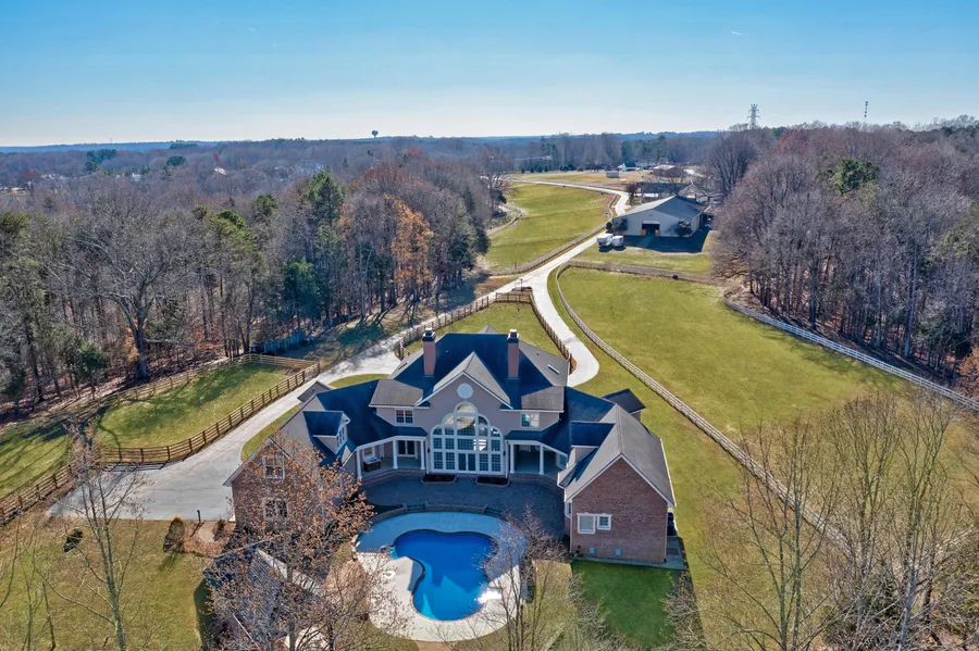 COMING SOON ~ 1/6/24 ~ Animal Sanctuary, Equestrian Estate, Event Venue, Family Compound, endless possibilities. Desirable Mooresville schools & Davidson address. Gated entrance opens to fenced lined paved drive which takes you past the farm amenities, including 2 bed/2 bath guest house, world class 10 stall barn, equipment bldg & large indoor arena. A circular driveway & impressive entrance to double front doors opening to 2 story foyer w/sightlines to great room & pool. The custom wall of windows bring the outdoors in. Open floor plan w/kitchen & dining room overlooking the GR. Home designed w/two wings creating a courtyard pool area. Main floor primary suite houses a flex room, large bedroom & spa bath w/whirlpool tub, 2 granite vanities, custom built-ins & two large walk-in closets. 2nd floor true to life movie theater & game room both offer wet bars. 1 ensuite guest room w/access to 2nd floor balcony overlooking the farm. Enjoy trails, shuffleboard, horseshoes & disc golf.