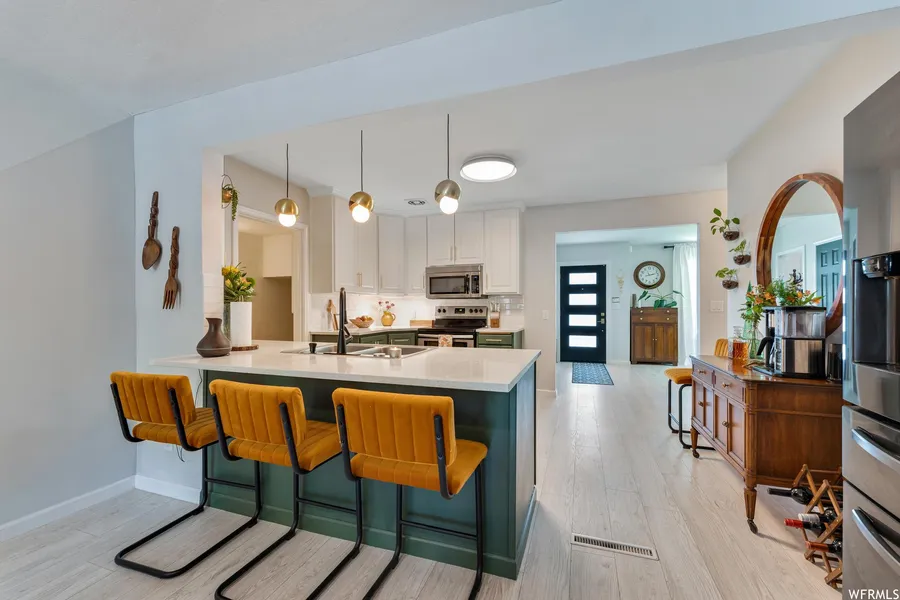 A beautifully unique home in a mature Smithfield neighborhood featuring a mixture of modern design aesthetic and old-world charm. This 7 bedroom 4 bath house sits on 0.35 acres and has a large garden with a graded firepit area, mature maple and ash trees, and plenty of outdoor play space. The garden contains apple, peach, and cherry trees. The main floor features a mudroom, sunroom, kitchen, dining, and living room in an open floor plan great for entertaining, along with a master suite (connected laundry room) and an additional bedroom/restroom. The kitchen has been updated with newly enameled kitchen cabinets, upgraded lighting, and hardware. Upstairs you will find two sizable bedrooms with large closets and storage. Great views of mountains and neighborhood. The basement is fully finished and features 2 large offices (or bedrooms), an additional bedroom, 2 full bathrooms, a living room...