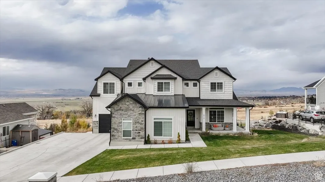 Beautiful custom home on the bench of Hyde Park with an amazing view of the Valley. This nearly new 2-Story features 9' ceilings on the main with over 18' ceilings in the great room and 10' ceilings in the walkout basement. An abundance of natural light, oversized garage with 220 power (EV ready), 5 bedrooms plus an office, upgrades throughout. Call your real estate professional for a private tour.