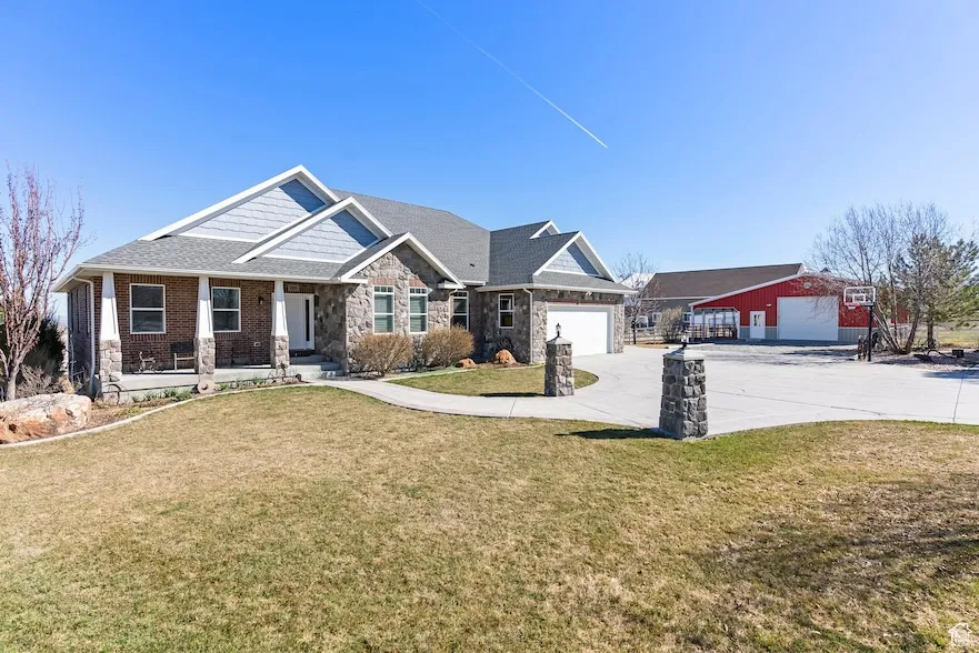 Situated in a picturesque country setting at the foot of the majestic Wellsville mountains, this stunning all-brick custom built ranch home offers the perfect blend of comfort, space, and breathtaking scenery. Built in 2011, this well maintained home spans 6674 sq ft, providing ample room for family, guests and entertaining. Amazing theatre room to watch all your favorite films. This home offers main level living with an open floor plan, large picture windows soaking in all the natural light as well as the views! Spacious kitchen, formal living room, plus an office that could also be used as a formal dining room or bedroom. Retreat to the extra large primary suite, complete with luxurious en-suite bath with two sided en-suite closets. All of the bedrooms are extra spacious! A fully finished basement apartment adds incredible value, featuring its own entrance, kitchen, living room, bedrooms and washer / dryer hookups. Perfect for multi-generational living, guests or rental income. Outside you will enjoy the serenity of 5.59 acres of open land. Sit on the large back deck and take in the breathtaking mountain and valley views. The yard is fully fenced with an auto sprinkler system . The pasture is also fully fenced and the barn has power, an overhang for added storage area and automatic garage door. Oversized garage has a Generator that stays with the house and hooks directly into home. Gas and electricity stubbed in for a heater in the garage. Roof was replaced last year. 2 furnaces, 2 water heaters , and a soft water tank. This property is a rare find that combines rural charm with modern living!