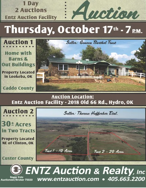 Auction 1 Property Directions From Hwy 281 & Wichita Ave. in Lookeba, OK. 3/4 mile east, 1/4 mile north