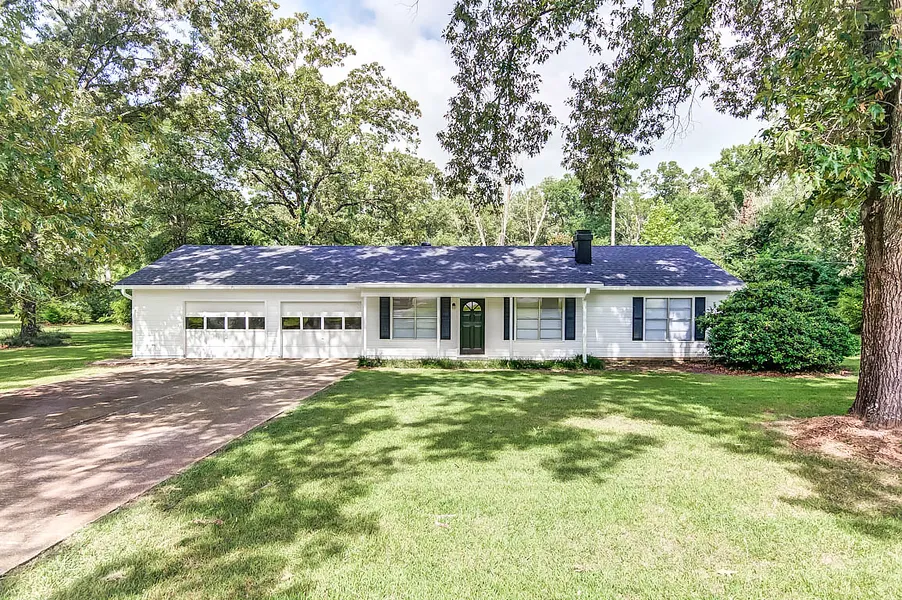 New items include: Roof, HVAC, fixtures, floors, kitchen, baths, pulls, knobs, doors. 1.79 acres. Large den with case opening into kitchen/dining area. Remote master. Covered patio.