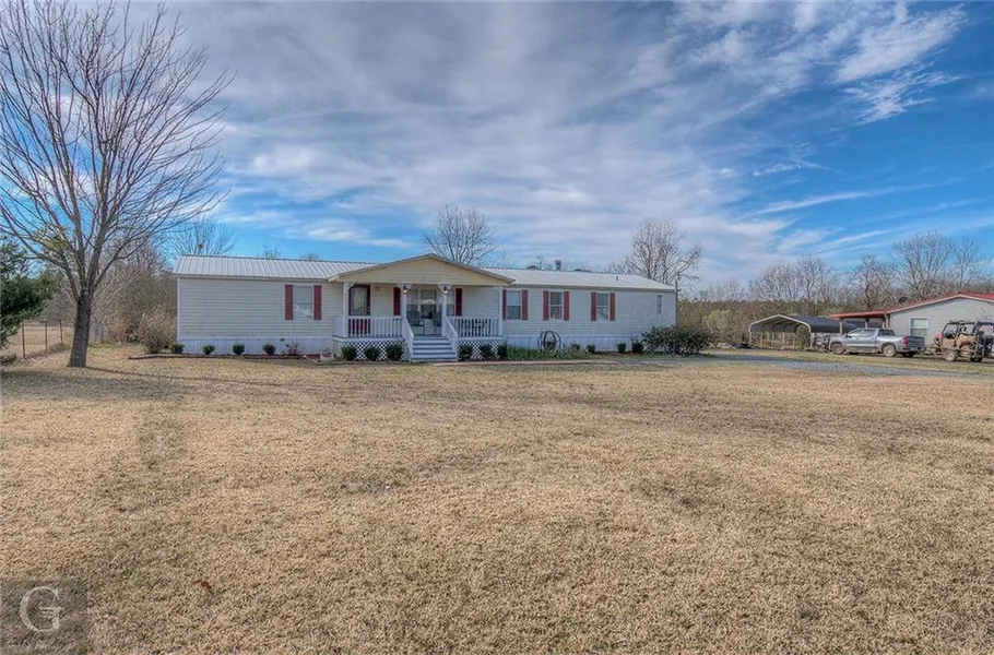 Great place to call home sitting just outside of Blanchard on 2.17 acres . The front porch is just waiting for the spring to come to hang all your ferns on. The home features an open floor plan and has two separate living areas. Remote master suite and two additional bedrooms. Home was originally a 4 bedroom and 2 of the rooms were joined together to make one bigger room. The huge covered deck off the back is very private and is very relaxing to sit and drink your morning coffee. Two car carport comes off the back as well .