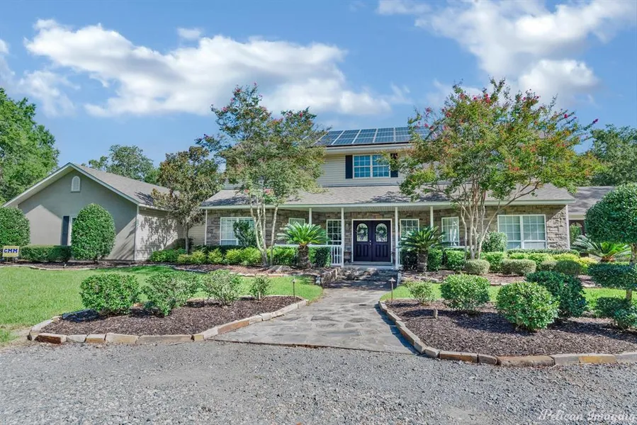 This is your chance to live outside the Shreveport city limits on 8.1 acres north of Southern Loop and east of I-49. Keep all of your toys on your own property with covered boat or RV storage, more than enough parking and an attached garage. This gorgeous home has all the space you have ever wanted for hobbies, entertaining and relaxing. Beautiful and spacious custom kitchen with ample countertop and cabinet space plus a prep sink in the island, two large living and dining spaces PLUS a huge game room with beautiful built ins, fireplace, another FULL kitchen and attached covered patio. Oversized second floor primary suite features a fireplace and balcony overlooking the grounds. Beautiful landscaping, solar panels and a Generac generator are just a few of the other extras this property has to offer.