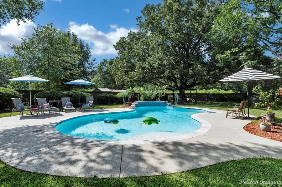 Country living close to all the amenities. This home boasts a large living room with cathedral ceilings, wet bar, gas log fireplace, and a formal dining room. You will find plenty of cabinets, an island, built in wine cooler, and a built-in buffet in the eat in kitchen. Enjoy your morning coffee in the hearth room. There is an additional 516 sf enclosed patio that includes a jacuzzi and plenty of room for a pool table and having great times with friends and family. The outdoor living space features an inground pool with a waterfall. The pergola has lights and ceiling fans for outdoor dining. The primary ensuite is the perfect getaway. All the spare bedrooms are spacious. One of the spare bedrooms can double as an office with a built-in desk and cabinets. This home has plenty of storage and includes a work room in the garage. The driveway has extra parking. Beautifully landscaped. Such a ...