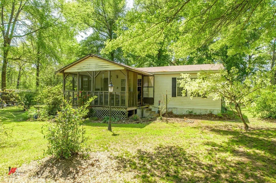 This manufactured home has a screened in covered front porch as well as an enclosed back porch with window unit air conditioning not included in square footage. Remote primary bedroom with walk in closet. There is a 2 car detached carport with an enclosed 3rd car carport that is being used for storage. Behind the carport is a nice shed that was lived in at one time by a tenant. It does not have a bathroom in this shed. Additional sheds on the property as well. The property is completely fenced with an automatic gate on the front. The roof is just over 2 years old on the home itself.