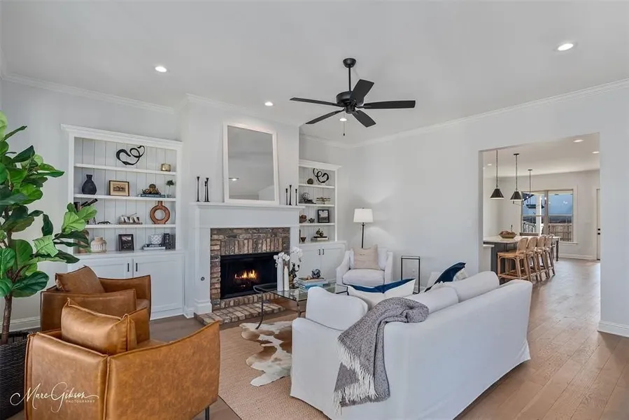 Welcome to this stunning home in the highly sought-after Grove at Garrett Farm, where classic elegance meets modern convenience. From the moment you arrive, you’ll fall in love with the precious front porch and classic exterior that set the tone for everything this home offers. Inside, the sunlit Living Room welcomes you with pretty wood floors, a brick fireplace, and built-ins on both sides—the perfect backdrop for cozy evenings or stylish entertaining. At the heart of the home, the Chef’s Kitchen impresses with an oversized island featuring a beautiful accent paint color, seating, and storage, complemented by to-the-ceiling cabinetry, quartz countertops, stainless steel appliances, a gas cooktop, custom vent hood, and pantry. The kitchen flows seamlessly into the dining area and living space, creating an inviting atmosphere for family gatherings and entertaining. Step outside to the co...