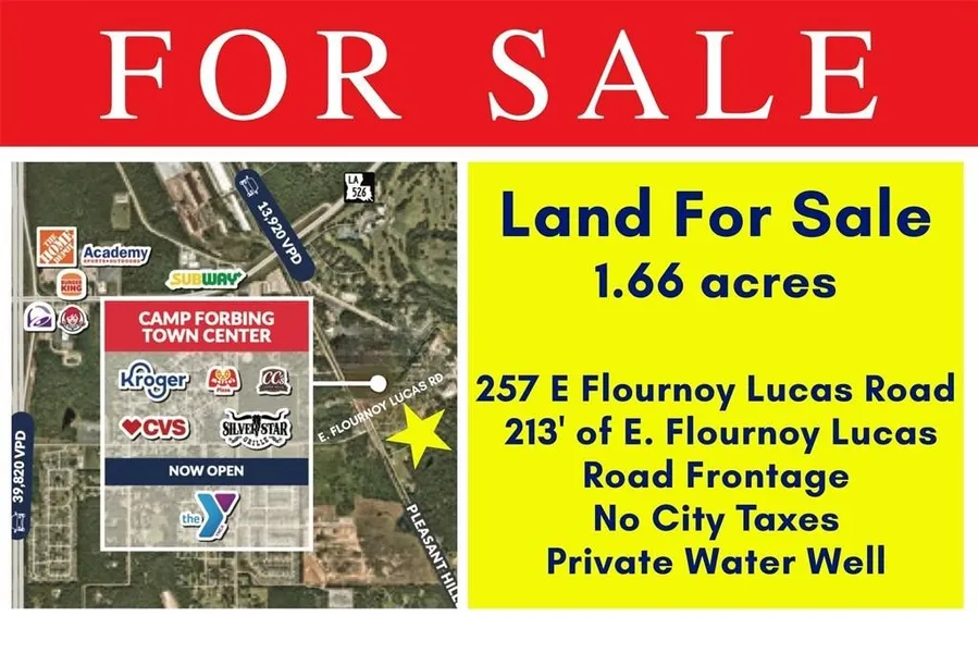 Wonderful Development Opportunity. R-A Zoning. 1.66 Acres. 213' of E. Flournoy Lucas Road Frontage. Immediately south of Kroger Marketplace and YMCA development, and only .25 miles west of Ellerbe Road and Flournoy Lucas Road intersection. Private Water Well. Natural Gas. No City Taxes.