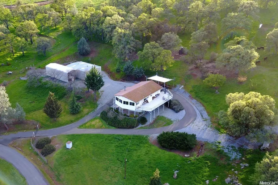 Riata Ranch: 20 spectacular acres with amazing views!! Watching the sunrise over the many mountains of the Stanislaus National Forest, your mind drifts as your cares melt away. There are views from every part of the property, from the orchard to the pastures, to the wrap around deck of this updated 3 bed/ 2 bath custom home that has it all including newer appliances. The large shop has 220V power, wood stove and AC, plus a huge Covered Motor Home garage, The plants, orchard, and garden are irrigated on timers. Circle paved driveway. New fencing. Shade sail for additional covered parking. This peaceful and serene property feels miles away from it all, Yet you are only 15 minutes to Angels Camp, Copperopolis, and San Andreas. 30 minutes to Murphys and Jackson. A Short drive to Stockton, Sacramento and the Bay Area. Minutes away from many lakes and Reservoirs. 10 minutes to PAWS Ark 2000 e...