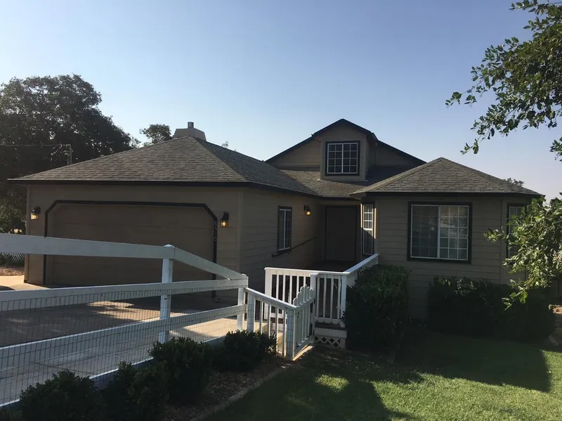 Here is the horse property that you've been waiting for. This cute clean home has vaulted ceilings, laminate wood flooring & both kitchen and bathrooms have been updated. Kitchen has s/s appliances & a pantry. There are 2 patio's, one with a pergola and the other surrounded by pretty plants. There is a 24x40 3 stall barn w/tack room in addition to the 11x32 hay barn or storage with plenty of extra parking. The 2+ acres of usable land is fenced & ready for your pets. 2 parcels totals 2.35 acres.