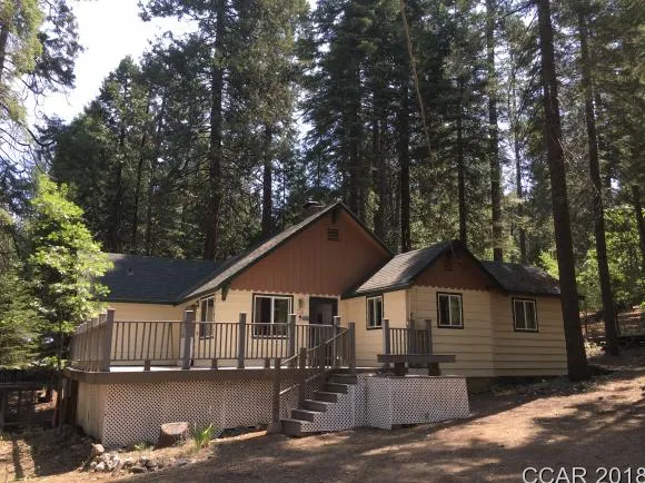 Great mountain flavored home on 2 acres. 3 bedrooms, 2 baths and a double car garage. Excellent location 2 blocks from shopping center. Land has many large evergreens and was recently cleared into a park like setting with good sun exposure. Most furnishings included. Owner financing available to qualified buyer. The R-2 zoning and county sewer means another home could be built there. Newer vinyl double pane windows.