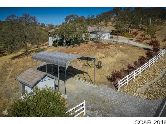 Detached shop , Covered RV Parking, PLUS a Custom home all on 3.48 acres. Desirable Open floor plan. Hickory floors. Maple cabinets , kitchen has built in hutch, large island . Appliance garage . Pantry room. Inside laundry with half bath. Extra storage room . 2 tank-less water heaters. Tile roof. Rolling shutters. whole house fan. Low maintenance landscaping. large deck in back to enjoy the property and fountain . Sense of space and nature with this custom home. has public water plus well