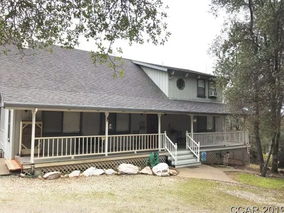 Just a 2 mile drive from Murphys up through the vineyards of Penn Gulch and tucked away on a back road in the hills is where you will find an all usable 5 acres and country home with beautiful tree top views. Southern exposure makes for ez gardening and plenty of light to enjoy. The huge covered porch runs the entire length of the front then inside is great room with natural wood vaulted ceilings, and an old school screened in porch just off the dining. Wood stove and handsome rock hearth, plenty of windows, custom tile work, and loads of storage. Detached garage has storage area with stairway access from garage. Great property for horse and other barnyard friends. Lower part of property perfect for small vineyard. Would be fun vacation rental. Clear Septic (in docs)
