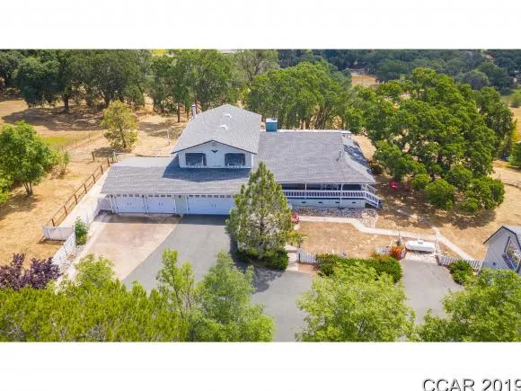 Looking for a workshop? You'll love the outbuildings on this usable 3 acre parcel with split level 3 bedroom 2.5 bath home with sun room. Private setting with paved driveway & level boat and RV parking area. 24 x 28 detached garage/shop with 24 x 10 additional attached workshop area and finished bonus room above perfect for recreation room or additional bedroom. Enjoy Racquetball? This property has a 44 x 20 Racquetball court with 14'ceiling. Could be additional workshop area. Additional outbuildings for hay storage and garden tools. Really nice usable property with pleasant views and nice oak trees fenced & cross fenced. Private setting yet not remote. Near 3 lakes & recreation. Make a move to the foothills so much to offer.