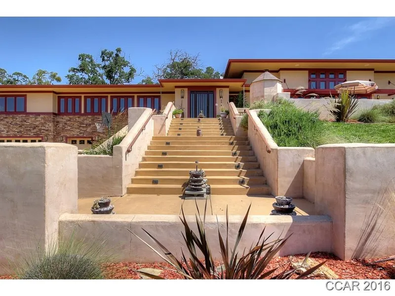 Beautiful Unique, Frank Lloyd Wright inspired design. Many windows overlook course & foothills.Spacious patio surrounded by garden boxes w/large pizza oven. Gourmet kitcen w/gas cooktop, built in oven & microwave,warming drawer, under the counter bonus refri,2 drawer dishwasher, Dacor expresso center, large breakfast island, great rm, wet bar, theater room, Master suite and 2 guest suites all on one level. Elevator takes you to the Studio apt & 3 car + golf cart garage areas. A Must See