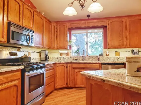 A Tastefully Remodeled Home on property set up for livestock, including round pen & shelter. Walk into a spacious Living rm with a built-in, brick surround fireplace. You'll immediately notice your gorgeous kitchen which features granite tops, stylish tile back-splash, stainless steel appliances and movable matching island (refrigerator included)! Notice the beautifully beamed or coffered two-tone ceilings throughout, whole house fan & central vac system. Family Rm features plantation shutters, surround sound system & flat screen above a 2nd built-in fire place. Lrg. master w/french doors leading to the exterior decking & built-in spa. Beautifully remodeled bathrooms, matching tile vanity/flooring. Fully landscaped front yard. Pride of Ownership is shown at this Classy-Country property!