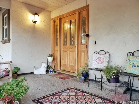Meander the paved driveway, over a seasonal creek bed, past large oaks, evergreens and wildlife to this popular 1,807 SF floor plan. Room for extra parking, your toys, bring your animals too! Livestock, including horses are approved in The Rancho Calaveras subdivision. This home was constructed in 2005 by a well known builder & improved with energy efficient Solar Paneling by the current owners. The covered front porch welcomes you into the expansive living room area, featuring a gas log wood-stove, coffered ceiling w/crown molding & beautiful natural lighting. HUGE Master suite w/lrg. walk-in closet. Extra linen closet in the master bath. Dining area offers access to a fenced back/side yard. Extremely private backyard; room for a pool, play structure, tool shed OR all of the above!