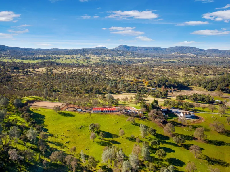 This equestrian property is the product of a 24-year labor of love. The 3000 square foot main residence has been updated over the years with an eye on functionality and an attention to detail as evidenced by the custom granite counter tops, high end appliances, large spaces for entertainment, and the use of wood paneling and stone masonry to create an elegant and rustic feel. There is a comfortable 1100 square foot guesthouse over an extra deep 3 bay garage. The 18 stall BarnMaster barn, two 60' round pens, original 72' x 175' sand riding arena, new 83' x 182' sand riding arena with 5 rail pipe fence and 15' wide perimeter sand track and hay barn are ideal facilities for a professional horse trainer, breeder, or the serious equestrian family. With 60 acres of grazing pasture dotted with oak trees, the ranch can also support a cow-calf operation. The 80 GPM well provides an abundance of water for the house, all the animals, and the extensive landscaping and garden areas.
