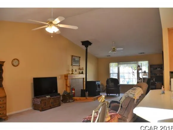 Open Floor plan. Large Laundry room off family room. Vaulted ceilings. Kitchen has Corian counter tops. master bedroom has slider leading to back yard, walk in closet. Front has private setting to enjoy the sunsets. Raised bed garden area. Fruit and Citrus trees. Side parking for RV or boat. Back yard has stamped concrete with pavers for easy maintenance . Raised deck area in back yard . Several windows to take in the natural light and nature