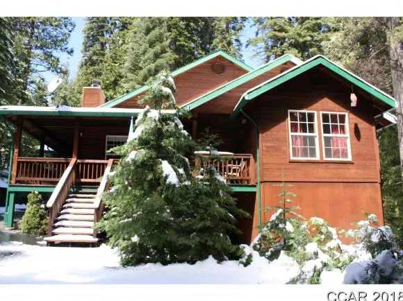 Big Trees Village Cutie! This cabin is cute, clean and ready to enjoy. Single story with 3 bedrooms and 2 baths built in 2000 with over 1700 square feet. Nice kitchen with Hickory cabinets and upgraded appliances. Great room has vaulted pine ceilings with a upgraded Lopi wood burning stove with a antique fireplace mantle. Large master suite with a private balcony, walk in closet and jetted tub perfect for relaxing. Large detached double car garage with built in shelves perfect for storing all your toys. There is also a large expansion area under the house that is great for extra storage. Lot next door is also included in the price making the total lot size .77 of a acre with a septic already installed. Call today for a private showing.