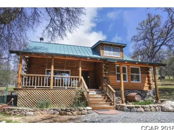 Youll never want to leave the rustic elegance of this beautiful log home nestled on the hill. The home is warm & inviting inside w/ an open floor plan, a wood stove in the living rm has massive rock hearth & gas stove in the dining rm. The master has a gas fireplace & the bath has a clawfoot tub & pedestal sink. And everywhere you look theres storage. Carpet & blinds upstairs 1 year old. There are 3 separate decks, one w/a hot tub & outdoor shower. The property is impeccably maintained & fenced w/ a wine cellar built into the hill w/ spectacular rock wall & walkways. The huge garden has raised beds built from brick & a potting shed. The seperate studio has a loft for sleeping, water & electricity. Theres also a workshop, RV hookups, shed, updated electrical & generator. 17 DAY CONTINGENT RELEASE CLAUSE