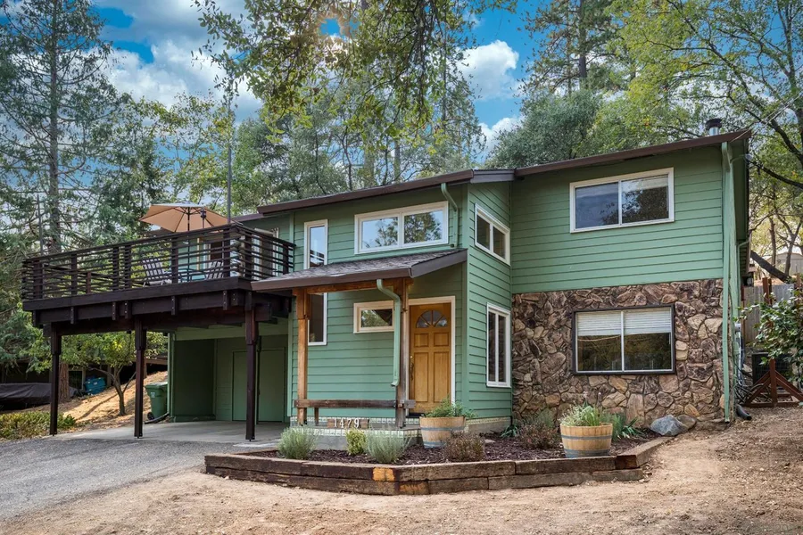 Welcome to your enchanting Murphys getaway! This charming home, located on a beautiful and secluded .53 acres with soaring trees, low maintenance landscaping, multiple entertaining or relaxing sites & plenty of room for RV or boat parking. You will be impressed from the moment you drive up to this home, located on a cul-de-sac, with the natural landscaping and charming curbside appeal. This home is perfect for full time or vacation living, less than 2 miles to Historic Downtown Murphys with Restaurants, Shopping, Wine Tasting, walking distance to local winery and close to multiple lakes, rivers, hiking and Bear Valley for your skiing adventures. Local Summer Concerts are sure to . The 1783 square footage is very well designed with the master, 2 bathrooms, additional bedroom, spacious office area and open living areas with vaulted ceilings on the main level. Sliders located off of the din...