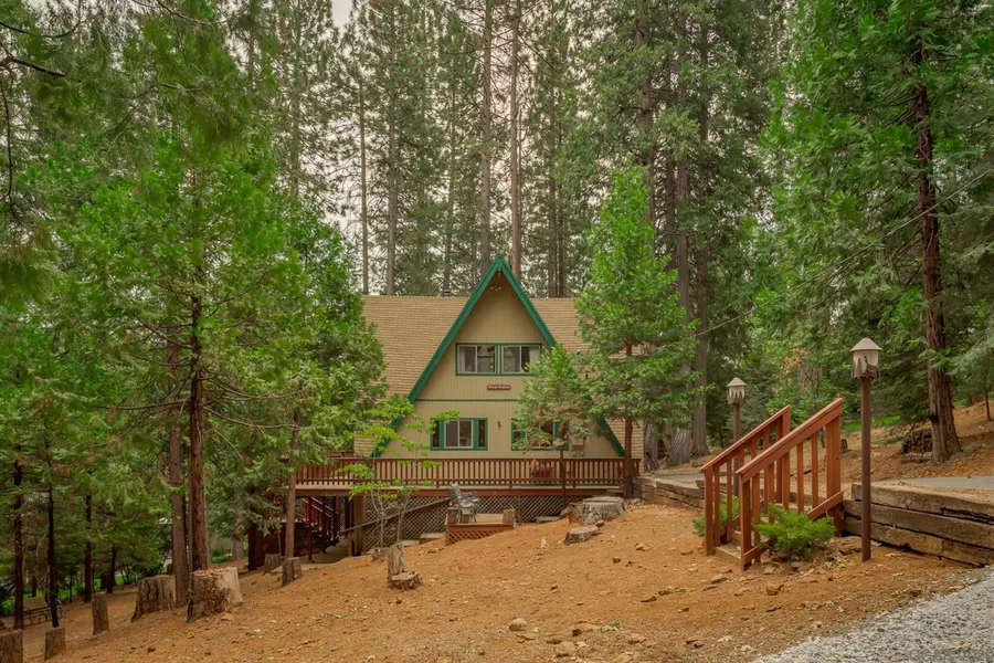Nestled among the trees is this quaint and rustic cabin in Blue Lake Springs. This cozy charmer has two bedrooms and 1 bath plus an open great room with vaulted high wood beam ceilings with lots of rustic charm and windows to the outside. There's extra space in the large open loft which has extra sleeping areas or can be a place to relax or watch a movie or play games. Enjoy time with friends and family on the newer deck surrounded by soaring pines and cedar trees all around. Easy level access into the cabin. Basement underneath for storing your bikes, kayaks and more! There is even a separate storage shed to store tools, supplies and even a snowblower. It is also within walking distance to Fly In Private lake. High speed internet is available too!