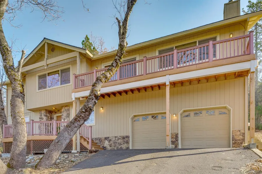 Looking for a large home to accommodate your family and friends, look no further! Popular Forest Meadows gated community home boasts an expansive gathering great room, 4 bedrooms, 3 full baths, office, inside laundry, and lovely outdoor deck with private backyard. Master Suite on main level and additional Master suite on lower level for guests. Enjoy family meals in a large kitchen. Cozy up to the fireplace in expansive living room with vaulted cathedral wood ceilings. Storage abounds with huge workshop off a two car garage. Includes Refrigerator and a house generator. Composite decking overlooks large yard with room to garden and relax. Roof is approximately 6 years old. Central Heat and Air. Driveway has a level parking area, and room to park many many cars. Enjoy community amenities including tennis, pickle ball, swimming pools, playgrounds, BBQ areas, clubhouse, trails, and more. Conveniently located minutes to downtown Murphys, Forest Meadows is a gated community with security patrols and underground utilities. The community is known for spectacular Stanislaus Canyon views. Experience mild four seasons, just enough snow for fun, without too much work. Gorgeous spring blooms and autumn fall foliage. Entire lot has auto irrigation. Explore local recreational opportunities such as Calaveras Big Trees State Park, high alpine lakes, hiking trails, local wine tasting, shops, and restaurants just to name a few. The market is moving fast. Please don't hesitate to see this one.